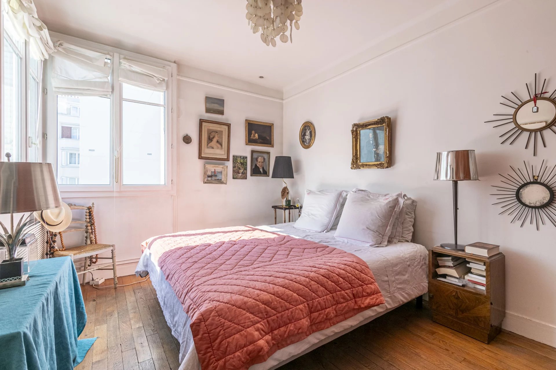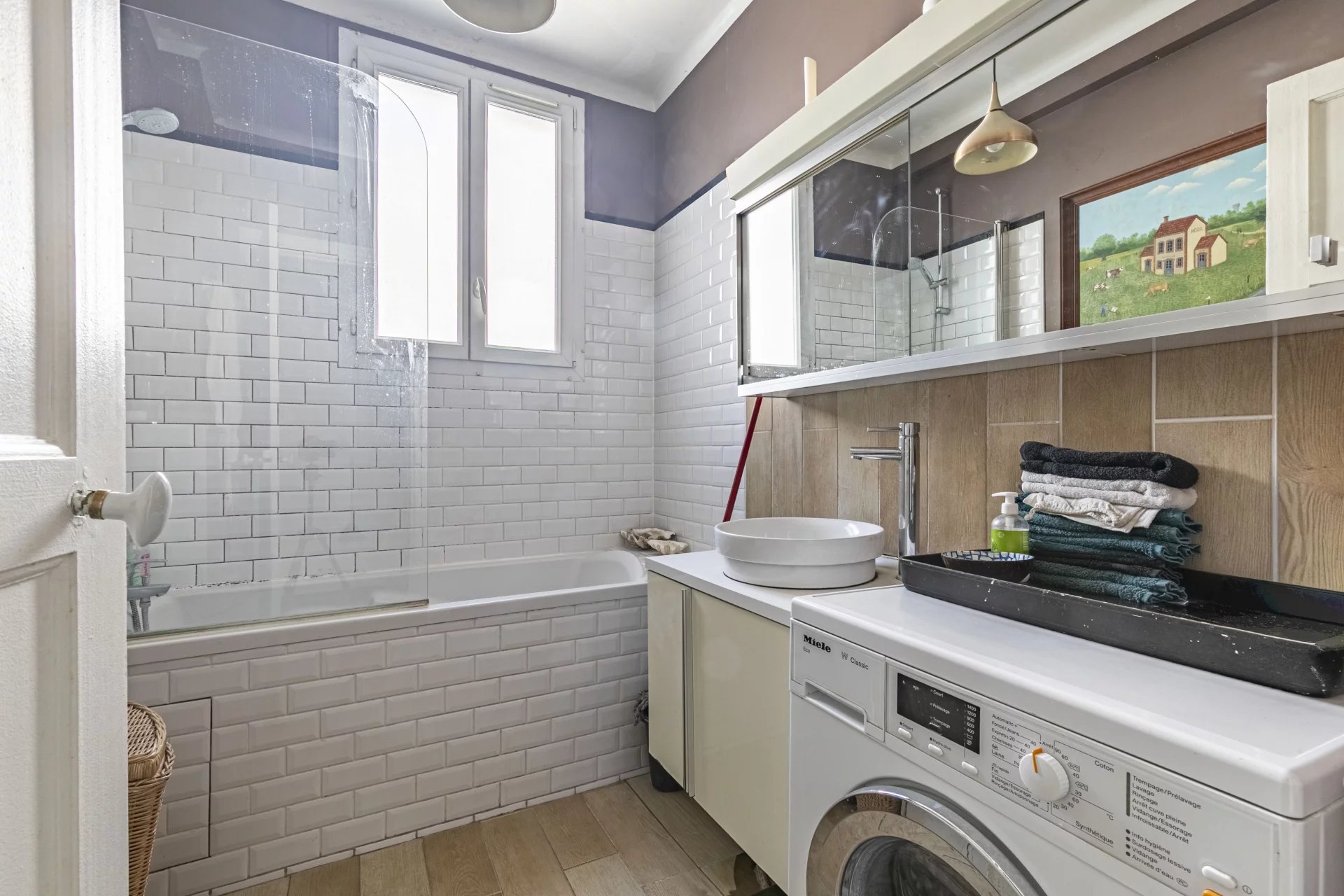 Au 4ᵉ étage avec ascenseur d'un immeuble de 1930 aux parties communes rénovées, appartement familial de 98 m² avec de beaux volumes, composé d'une entrée desservant une cuisine aménagée et équipée, d'un double séjour avec bow-window de plus de 30 m², de trois chambres, d'une salle de bains et de toilettes séparées.